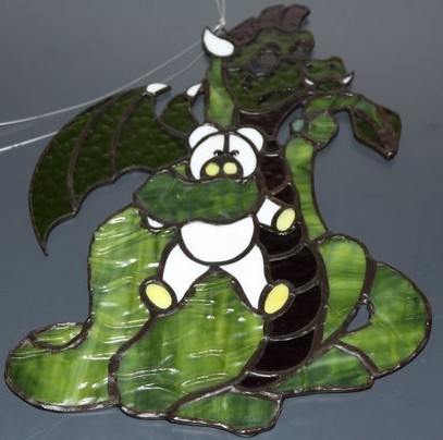 Drache mit kleinen Teddy im Arm