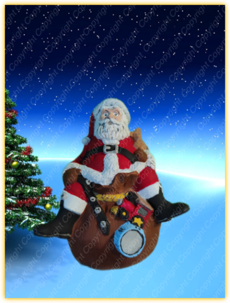Ein niedlicher kleiner Weihnachtsmann, der lässig auf einem Sack sitzt - handgemalte Keramikfigur für festliche Dekorationen. 🎅🏼🎄